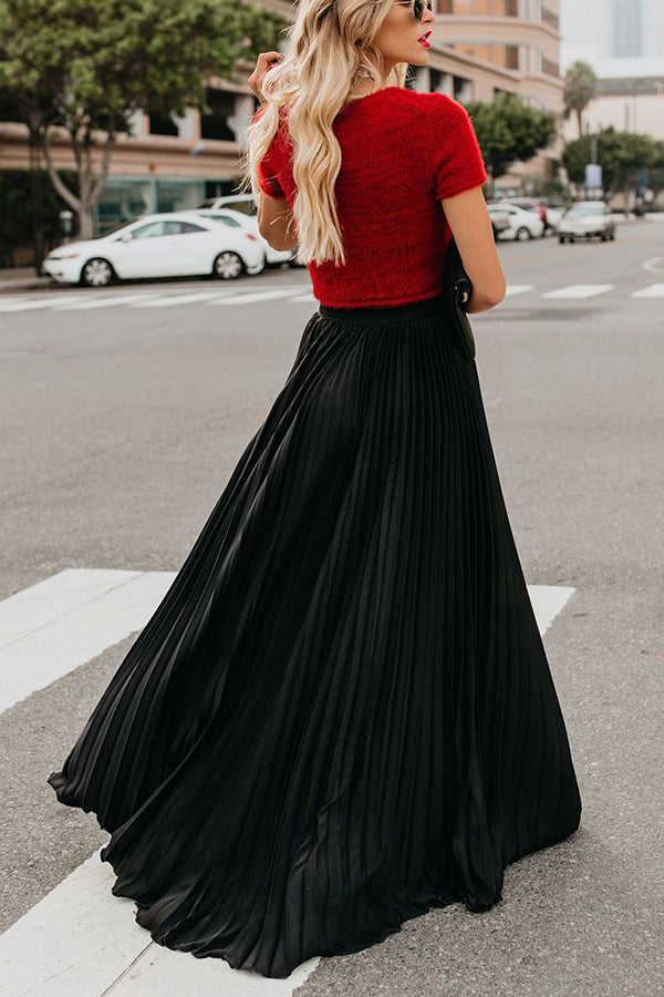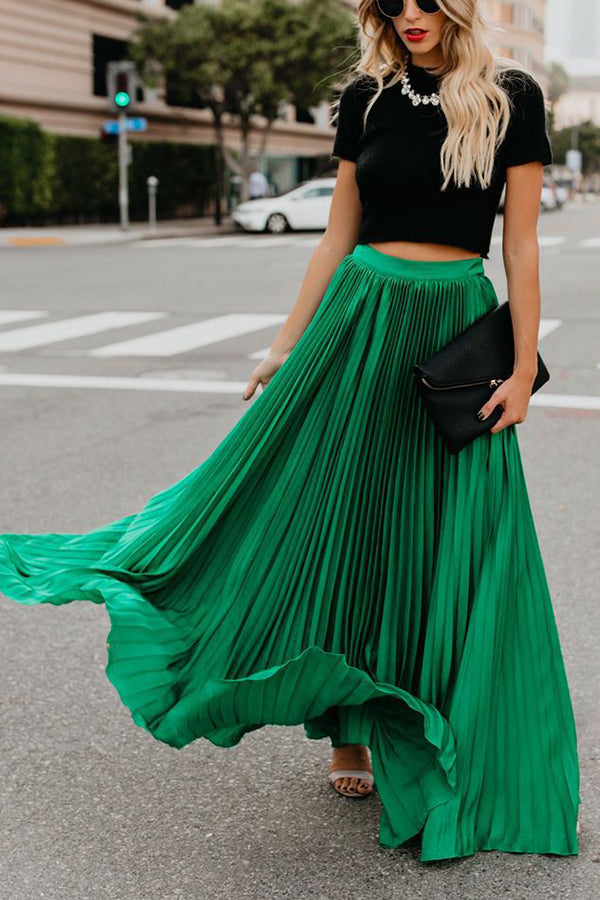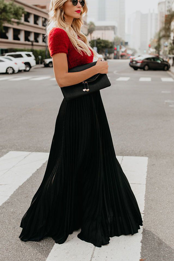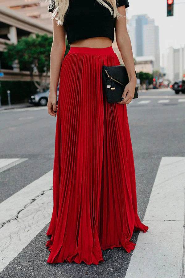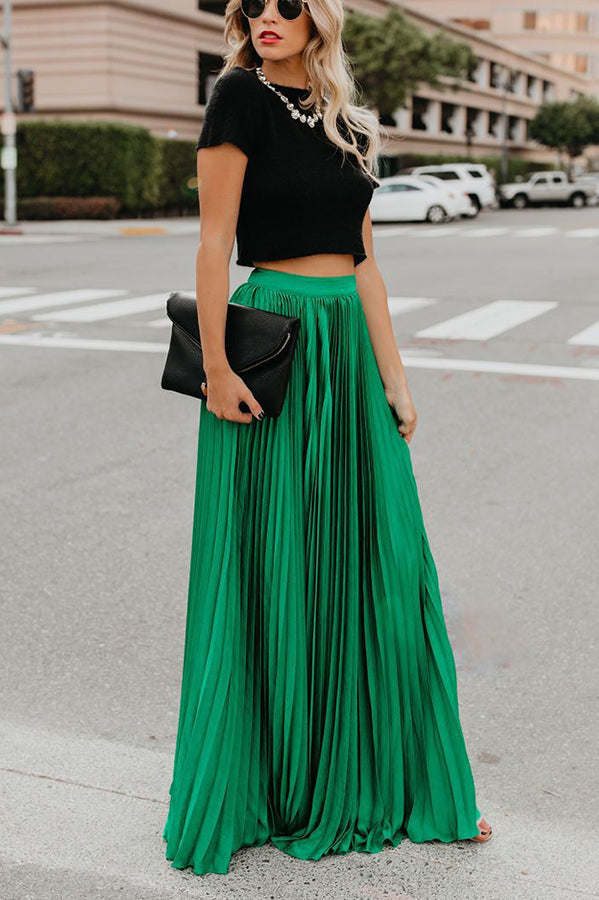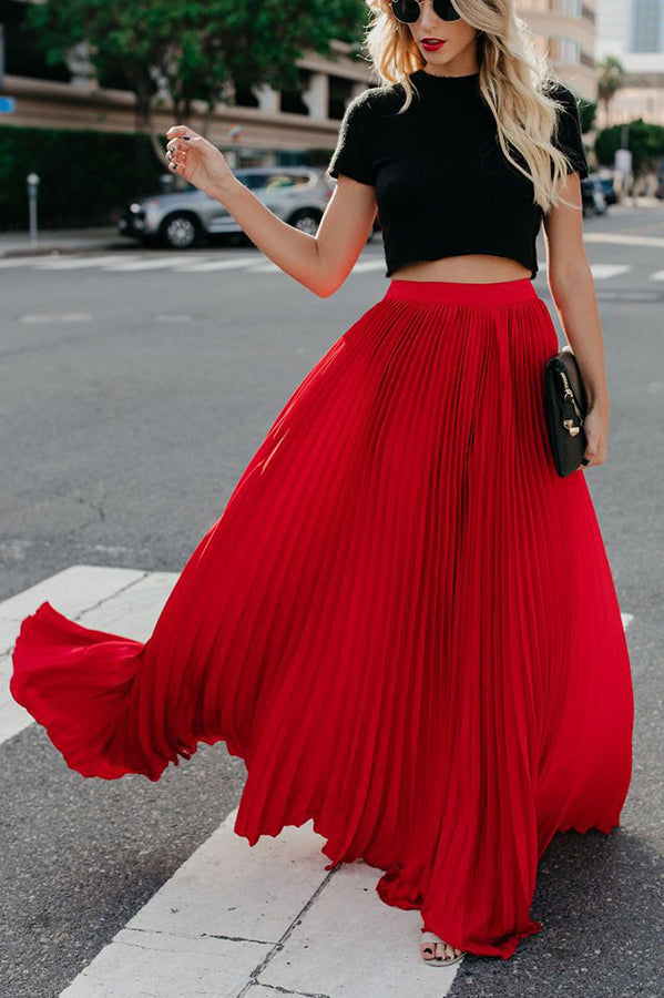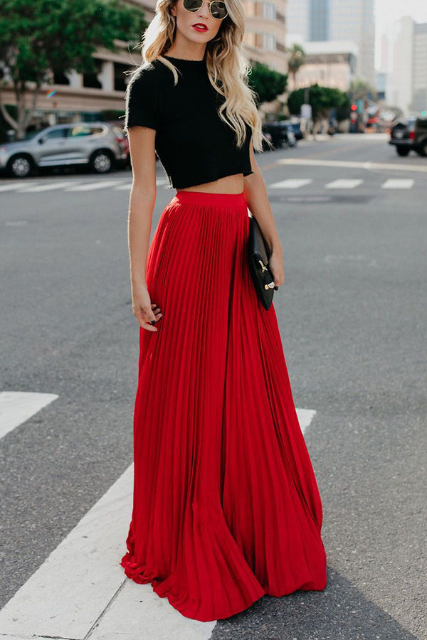 Ruffle Trim A-line Skirt, Solid Color Maxi Length Layered Skirt, Women's Clothing