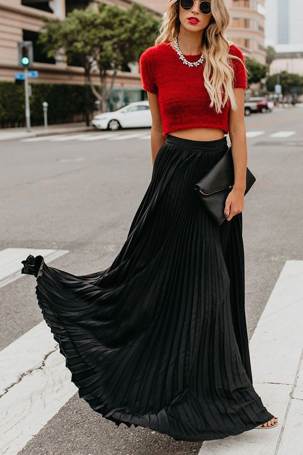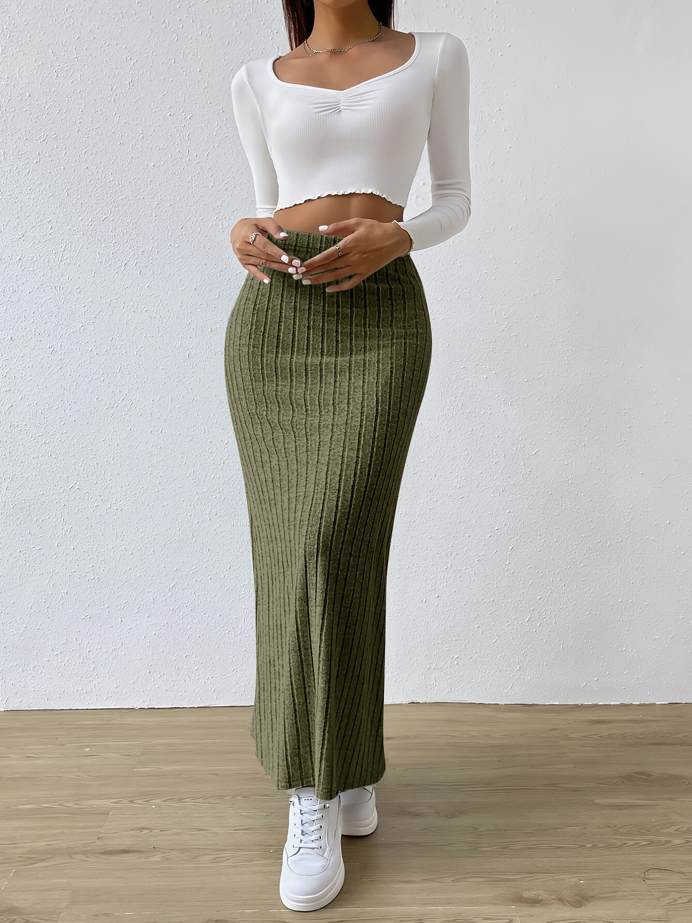 Solid Ribbed High Waist Skirt, Casual Ankle Length Bodycon Skirt, Women's Clothing