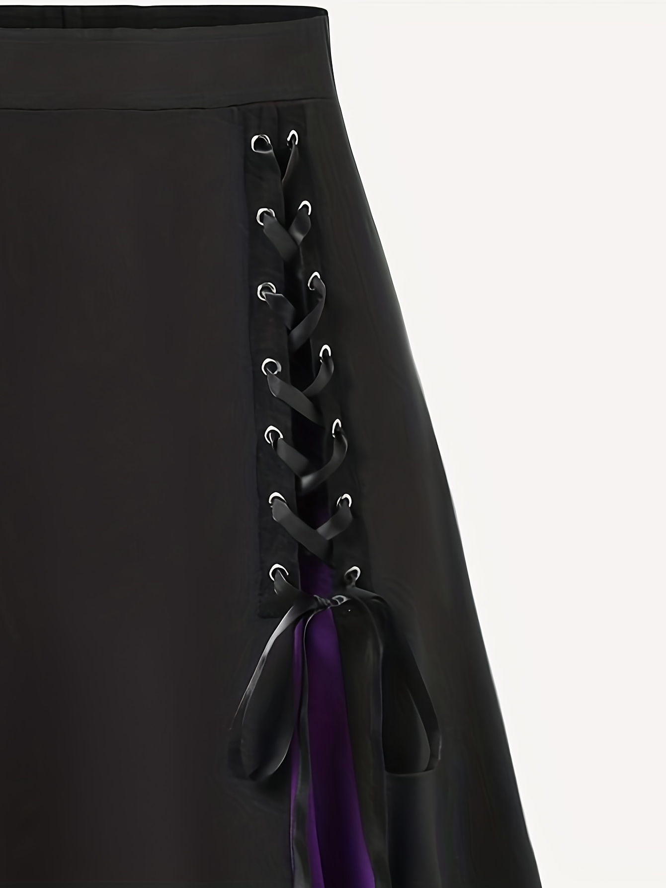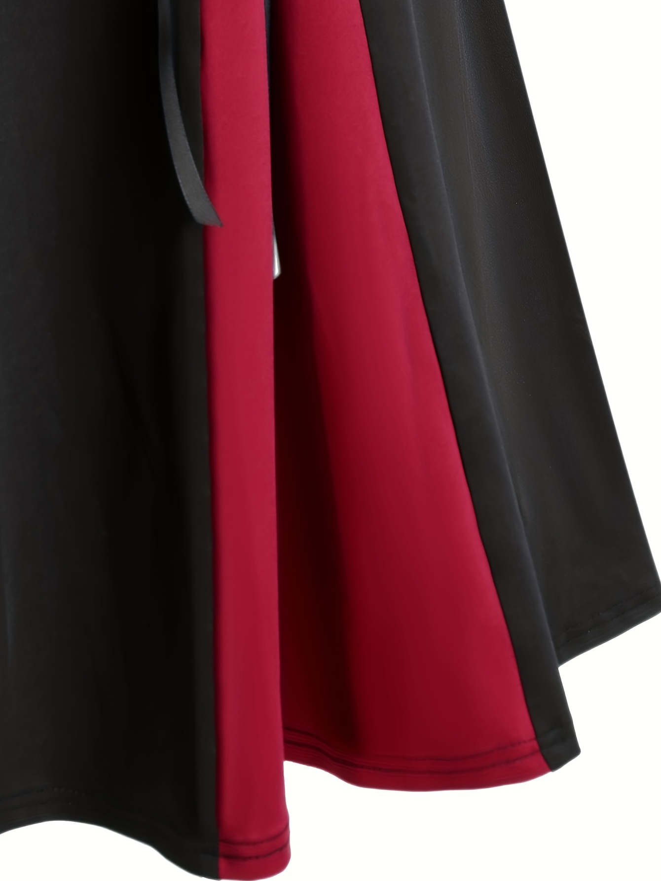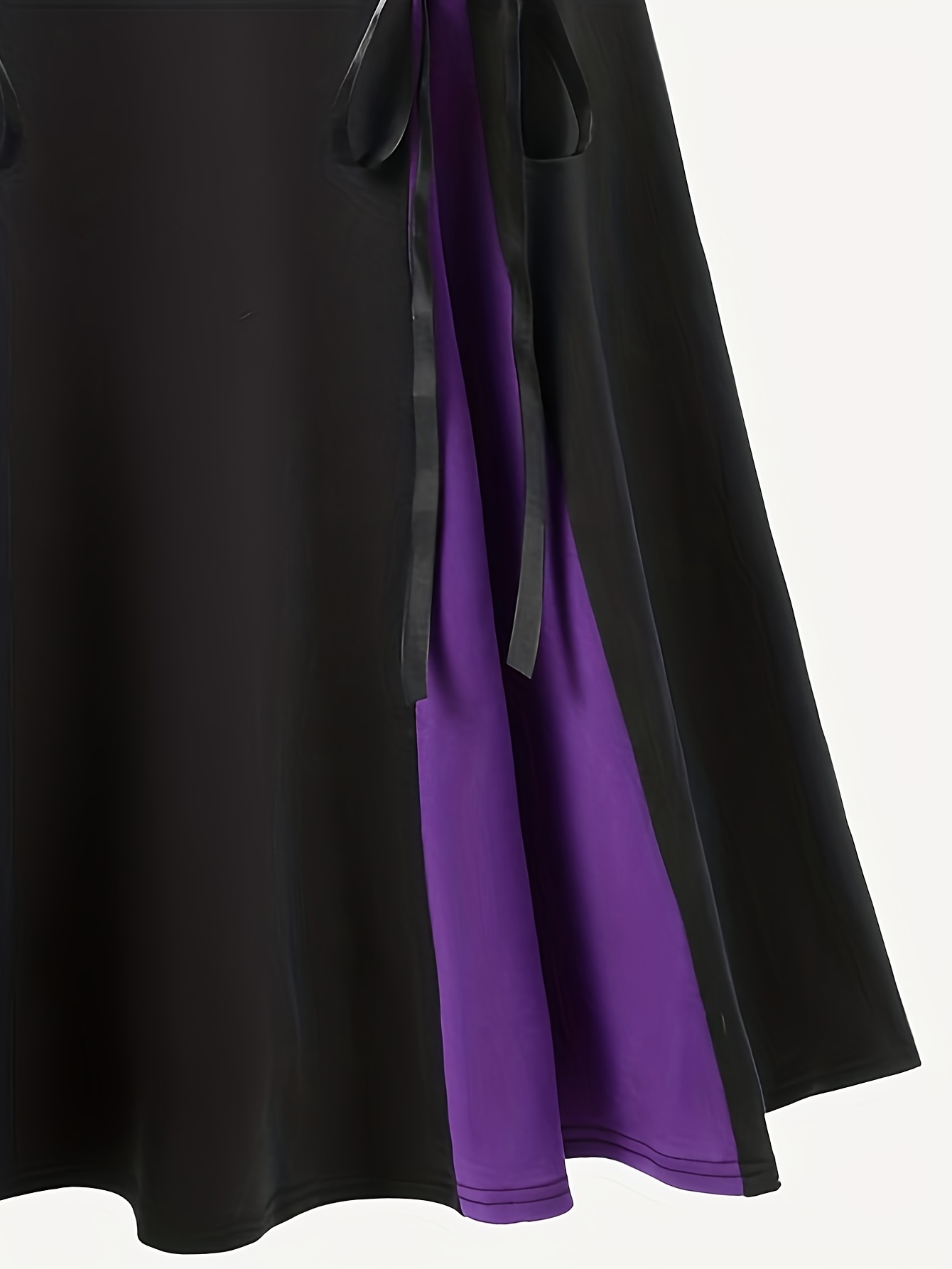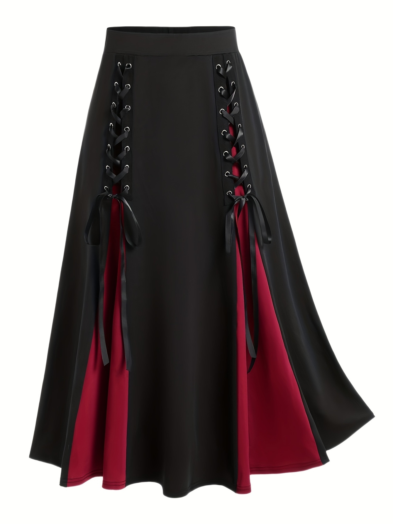 Vintage Colorblock Pleated Tie Front Skirt, Casual High Waist Skirt For Spring & Summer, Women's Clothing