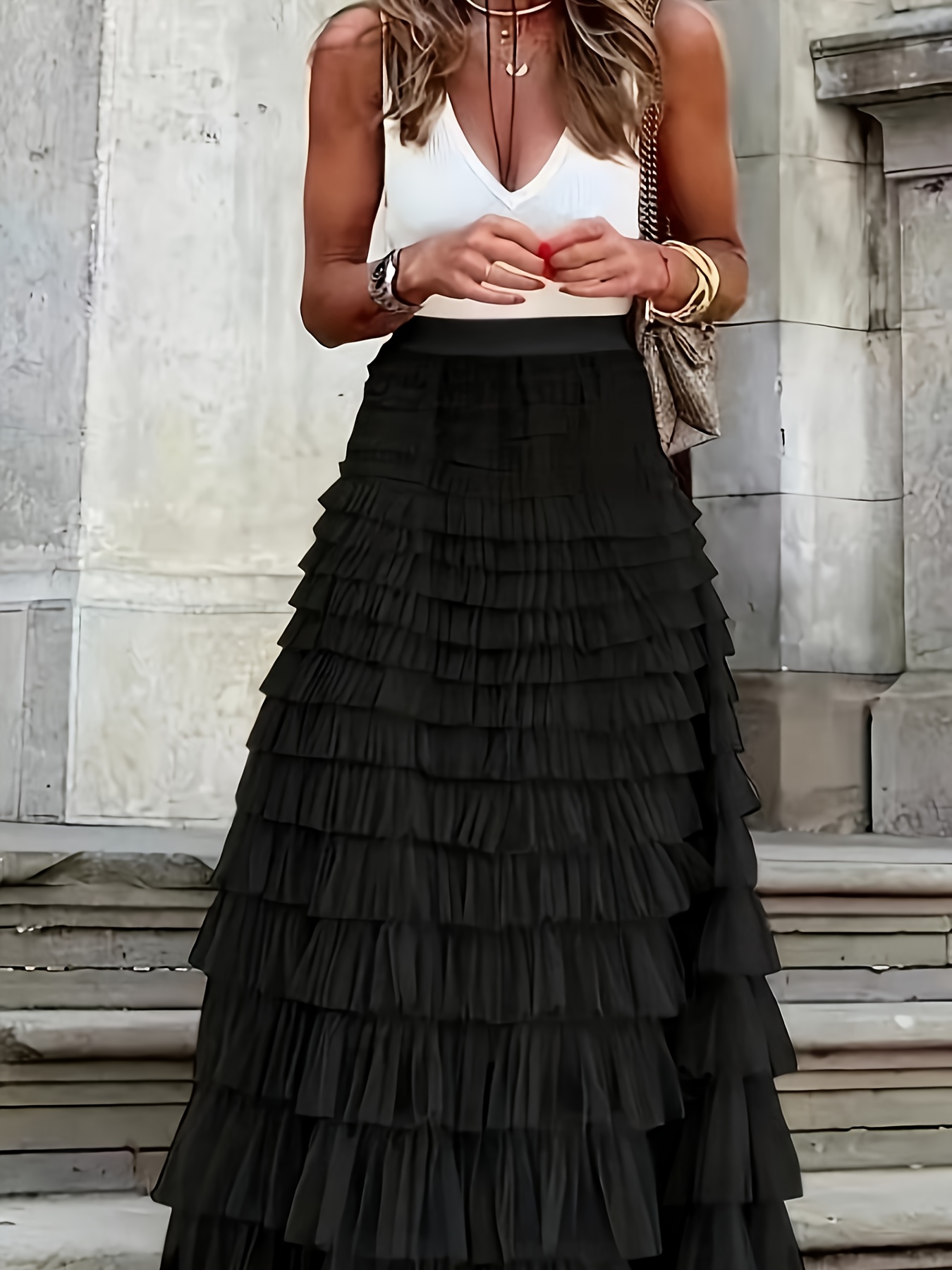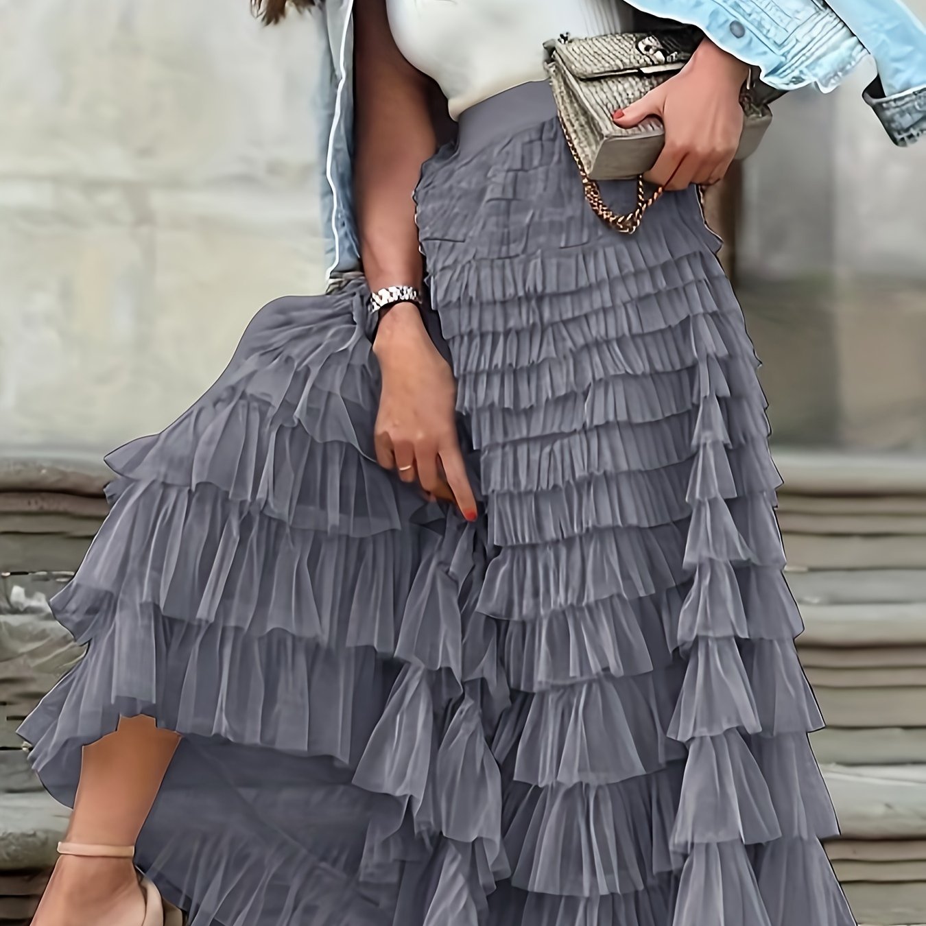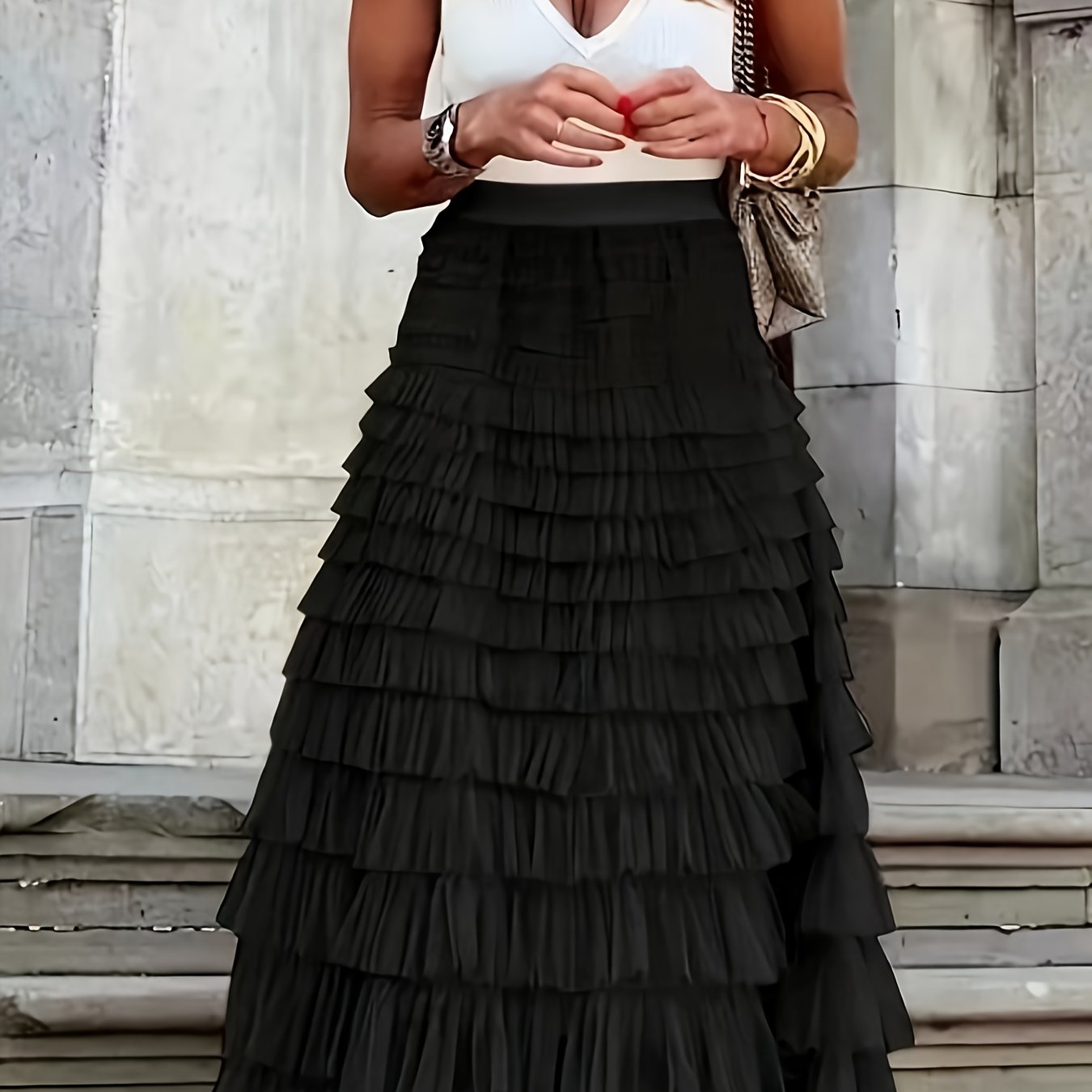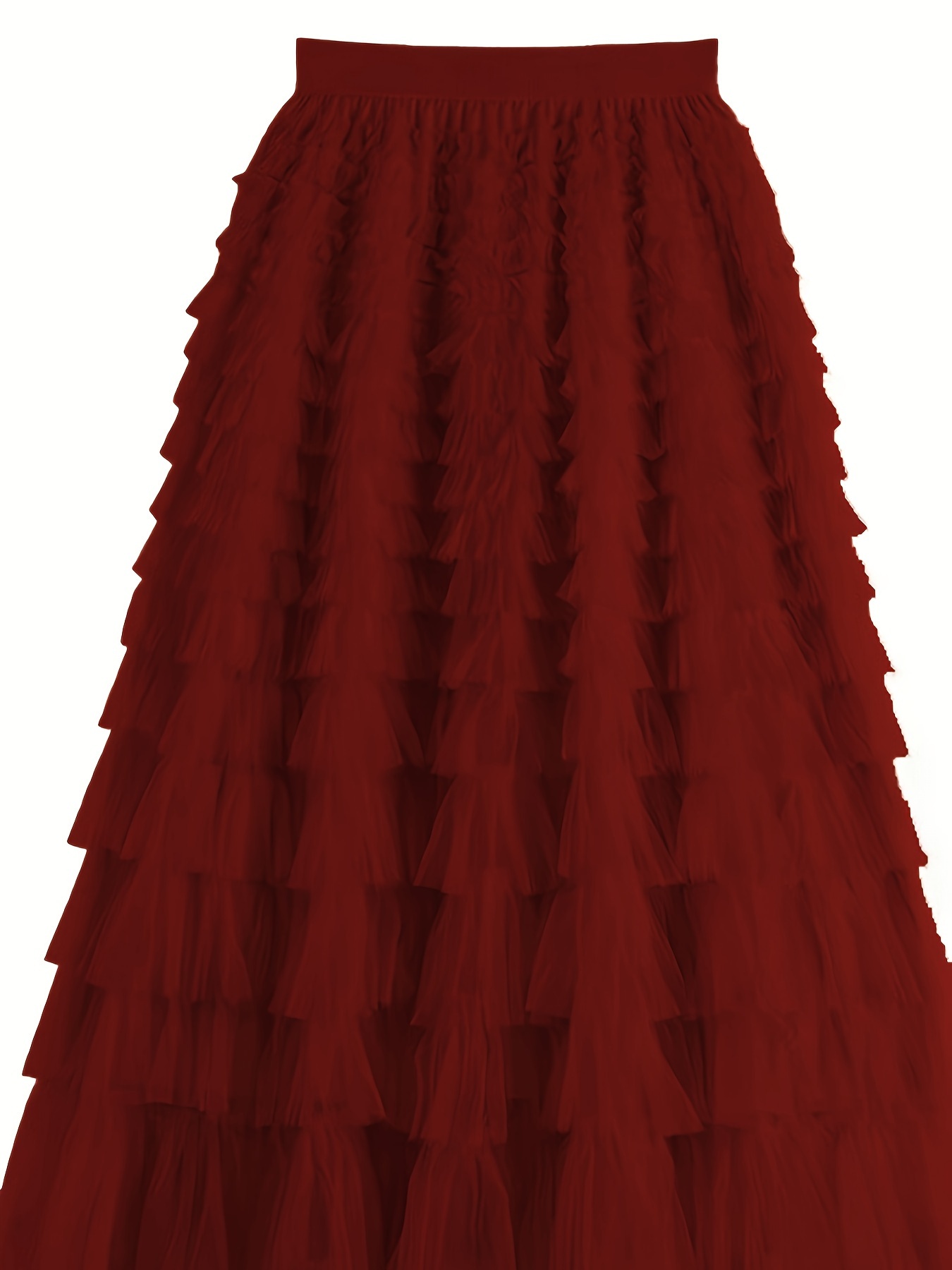 Women's Fashion Solid Color Layered Ruffle Design Elegant Party Skirt