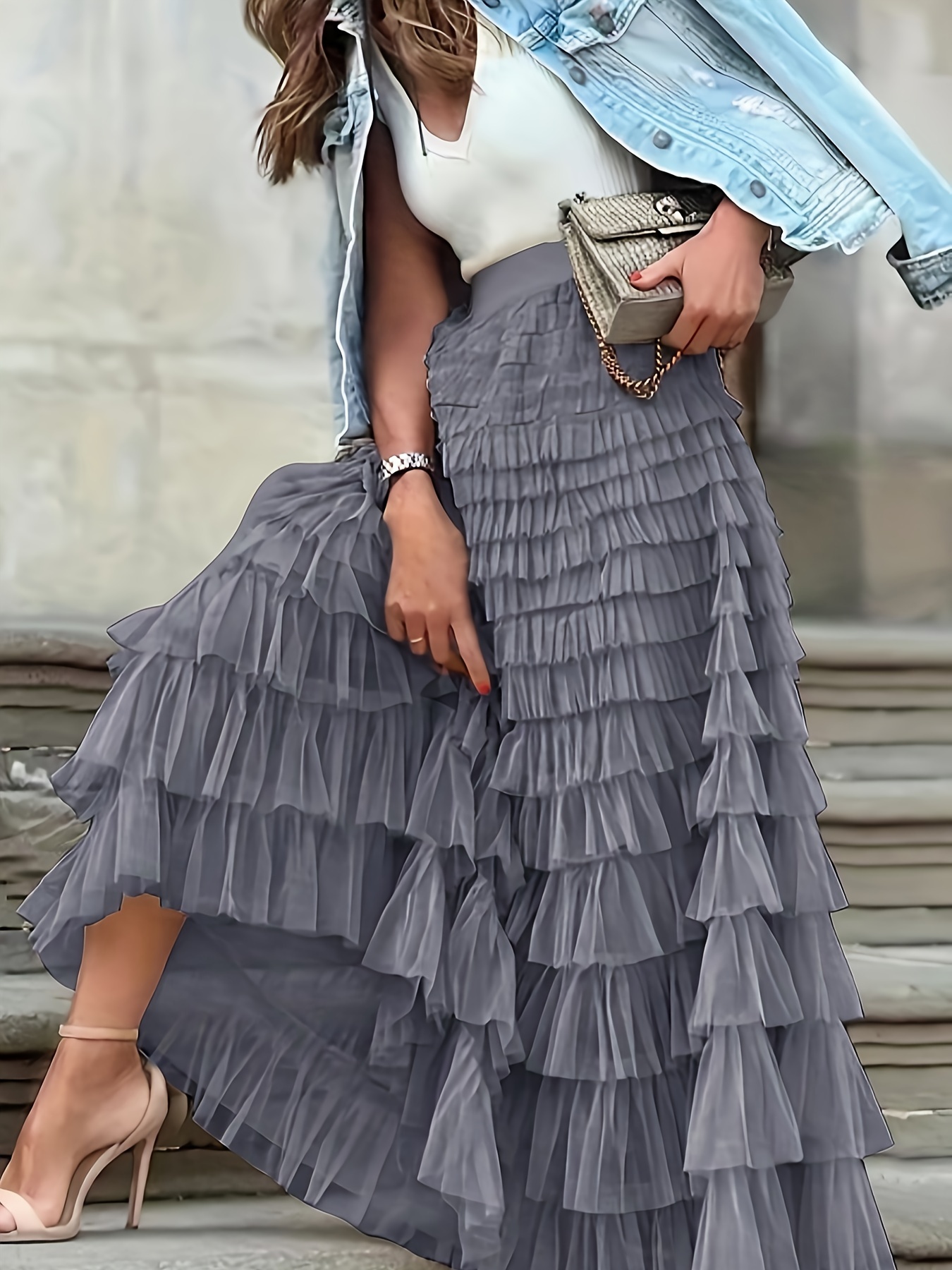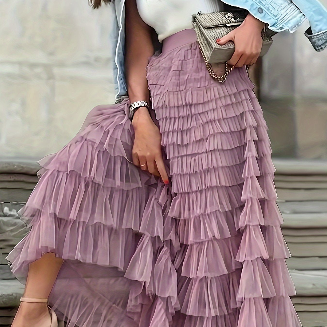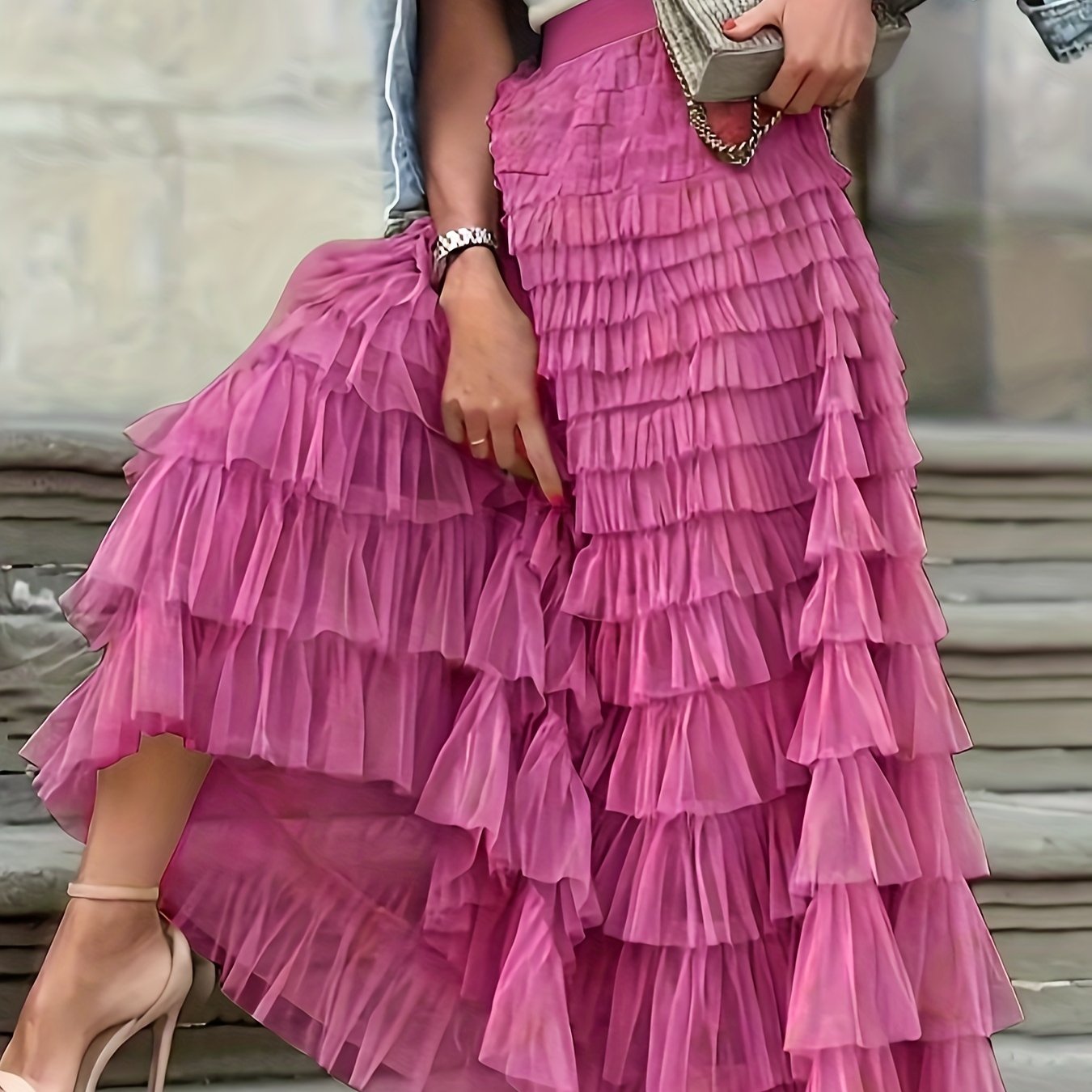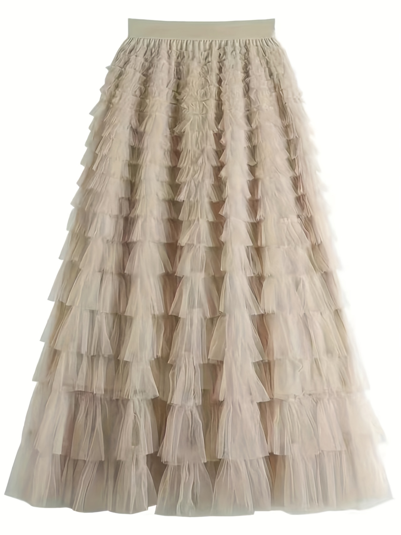 Women's Fashion Solid Color Layered Ruffle Design Elegant Party Skirt