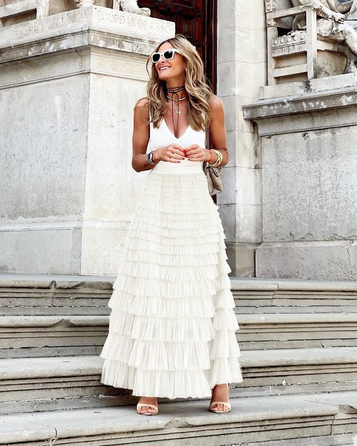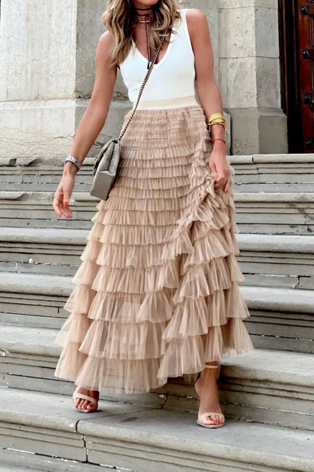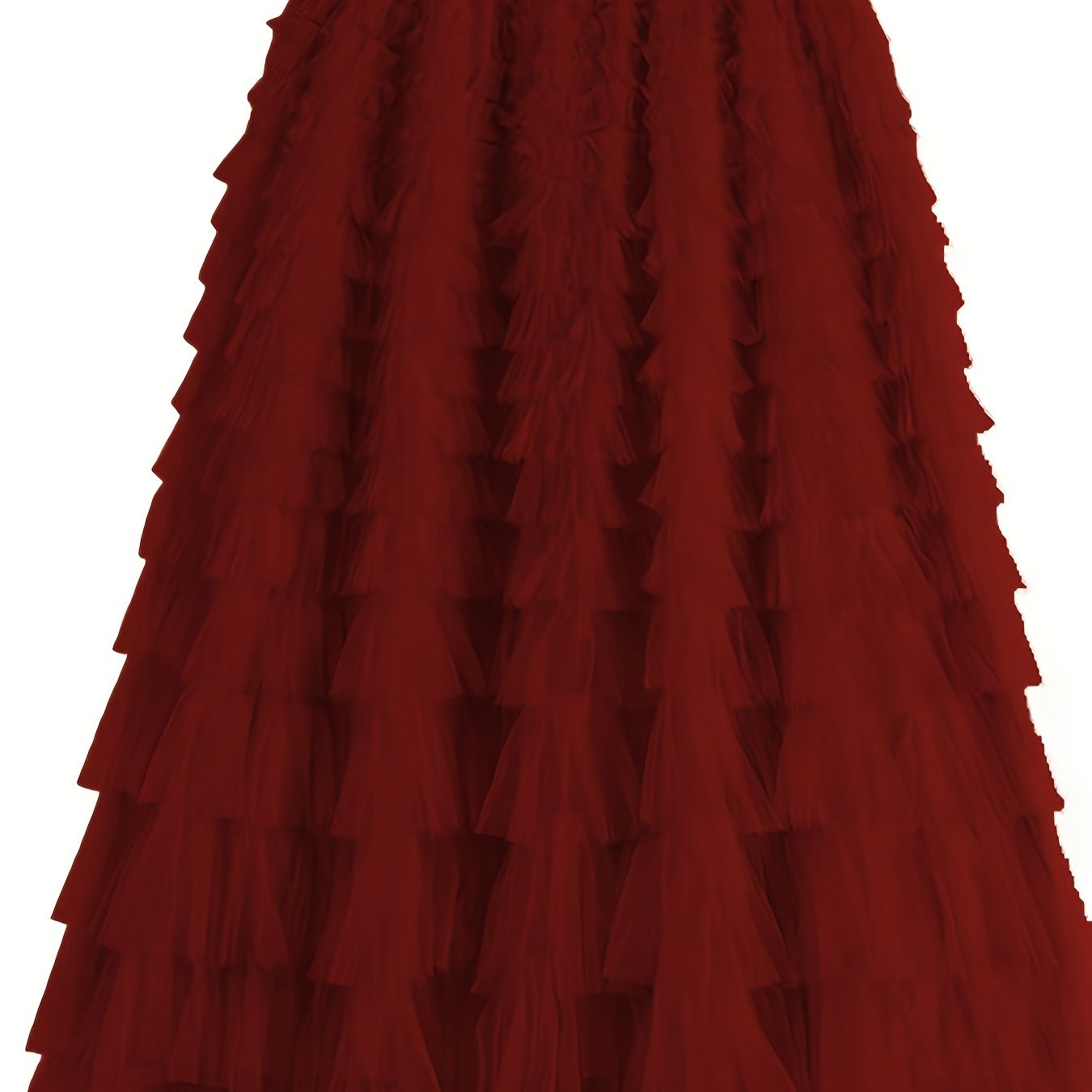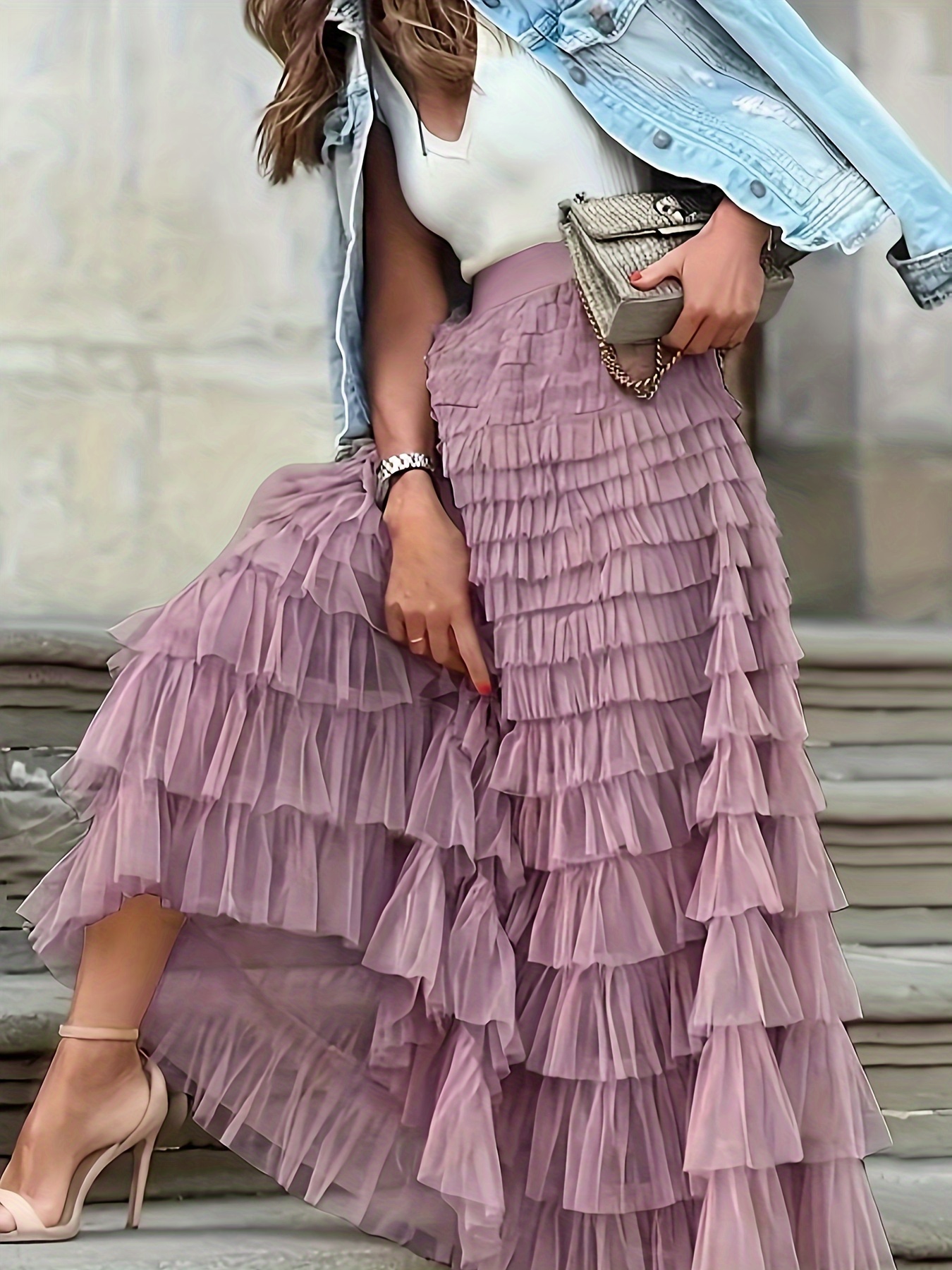 Women's Fashion Solid Color Layered Ruffle Design Elegant Party Skirt