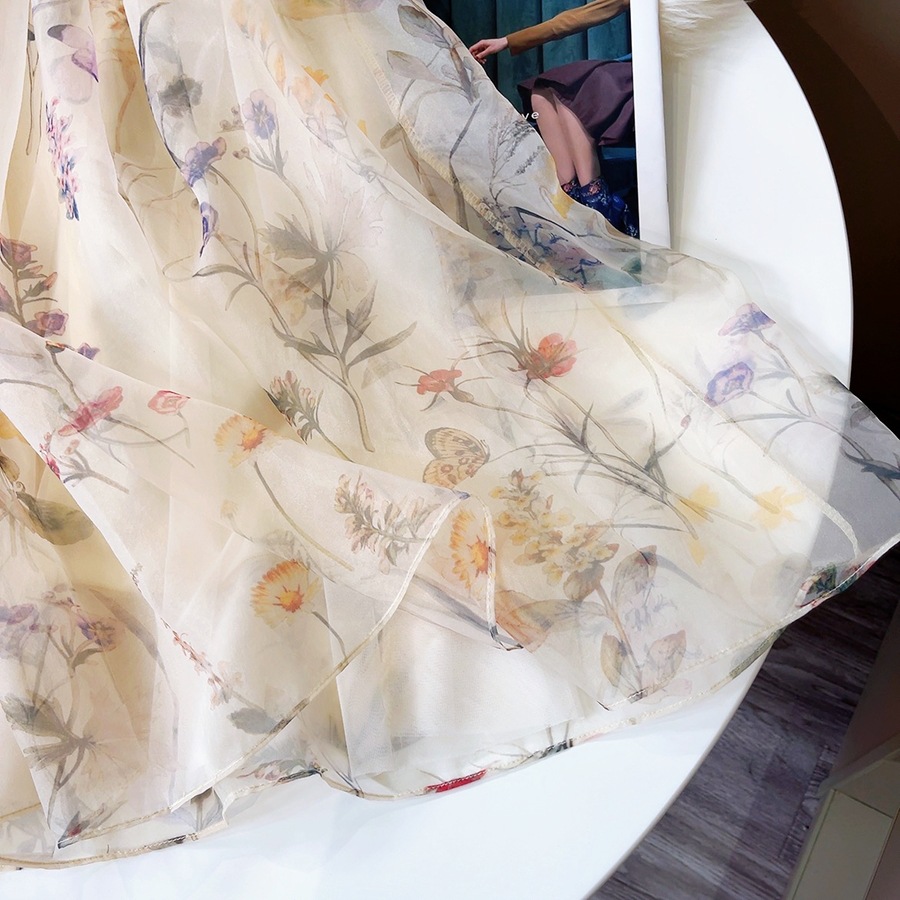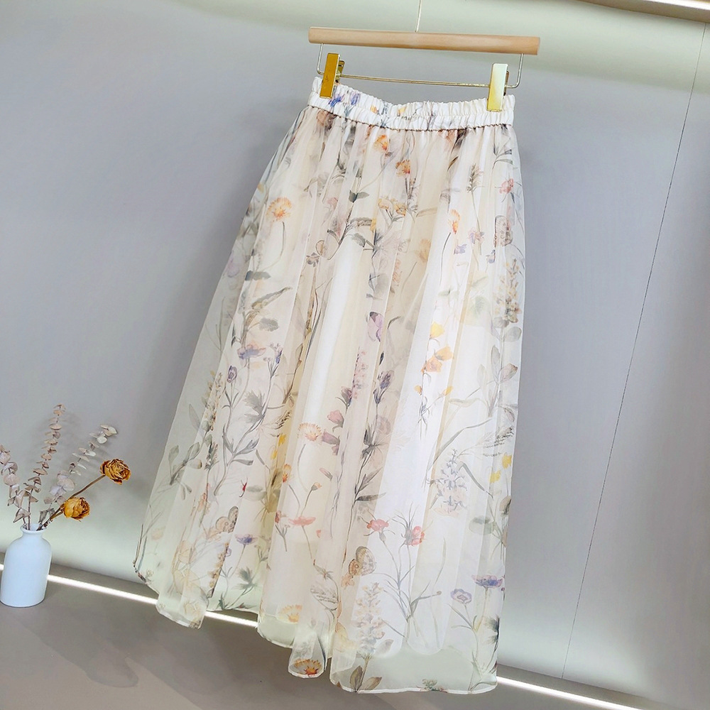 Women Sweet High-waisted A-line Mesh Midi Skirts