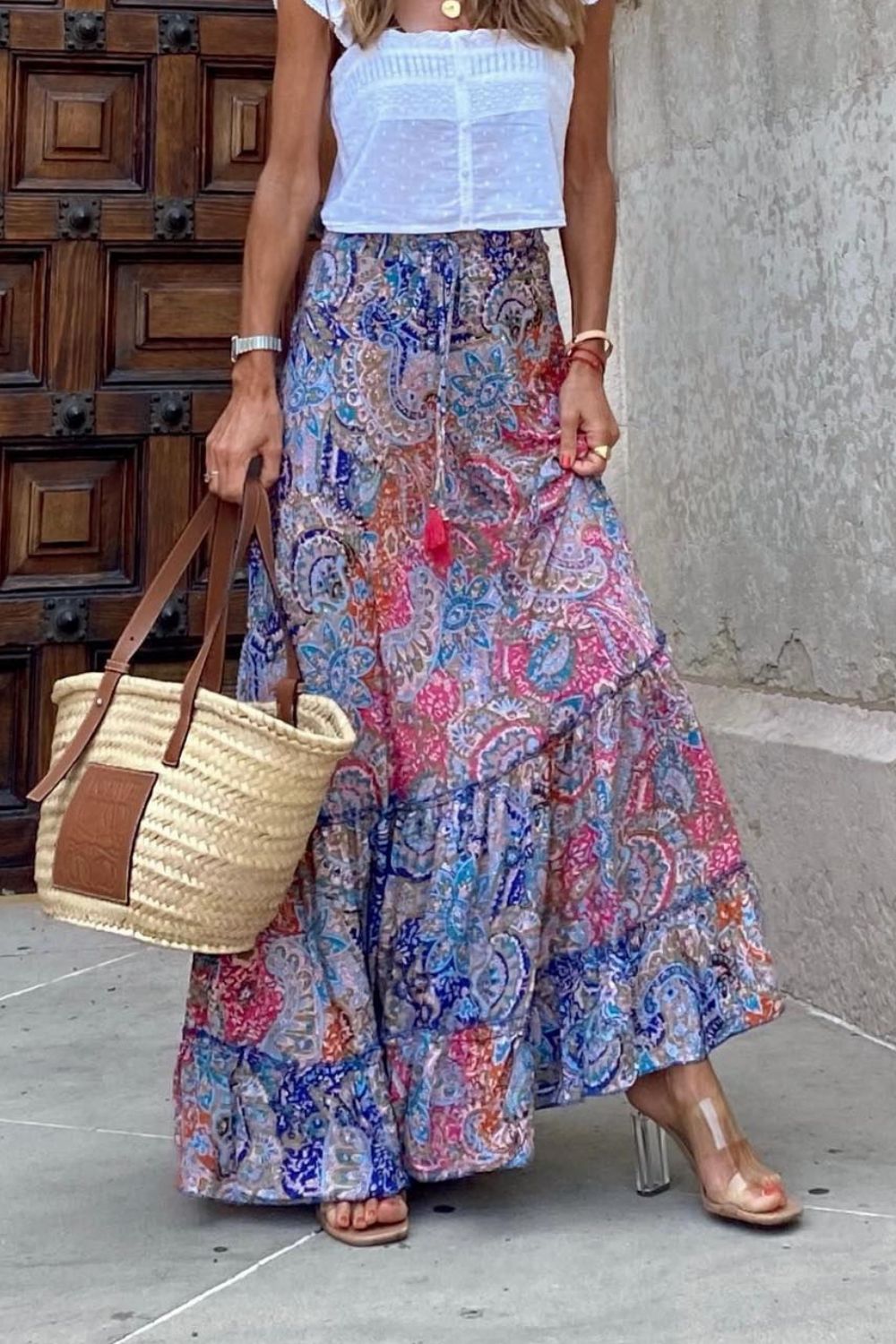 Boho Tie Tassel Print Elegant High Waist Casual A-Line Beach Skirts