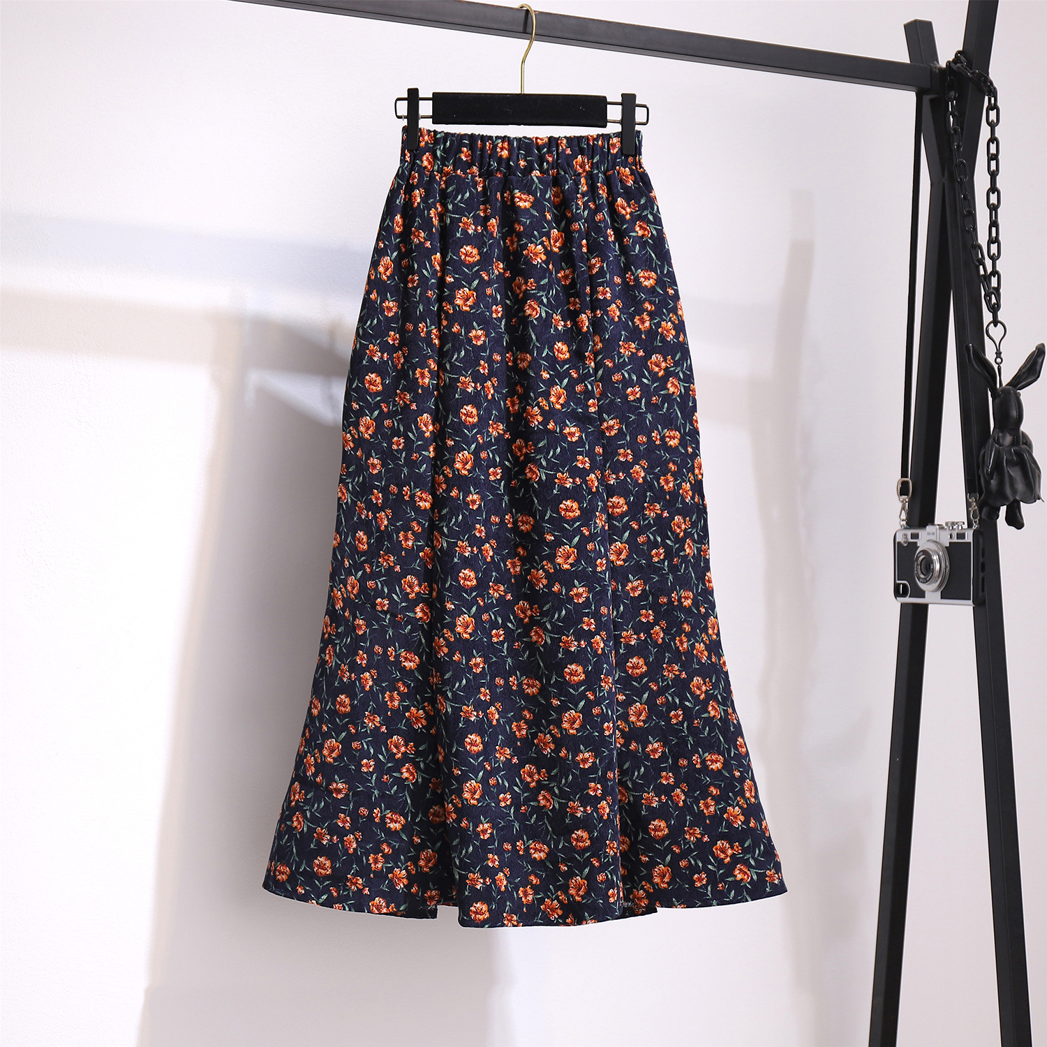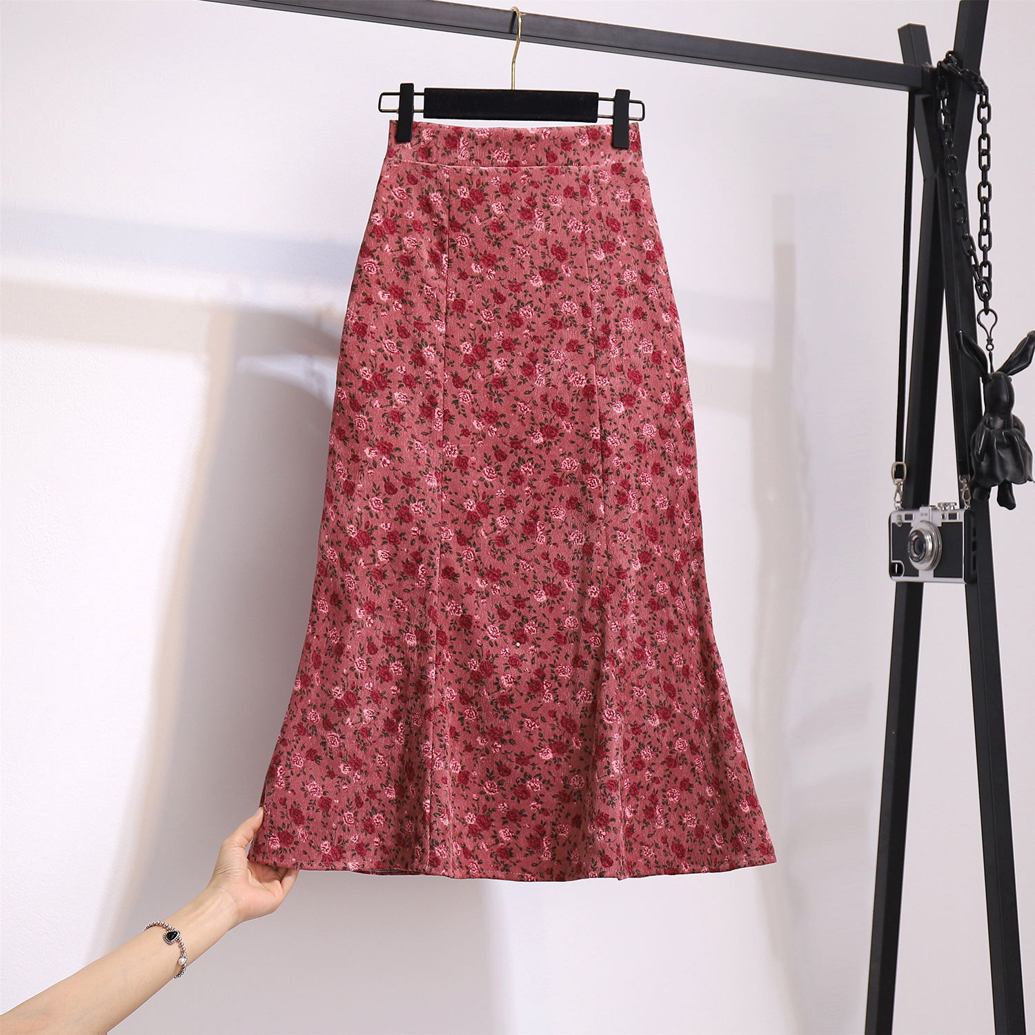 New Floral Fishtail A-line Pack Hip Corduroy Skirt