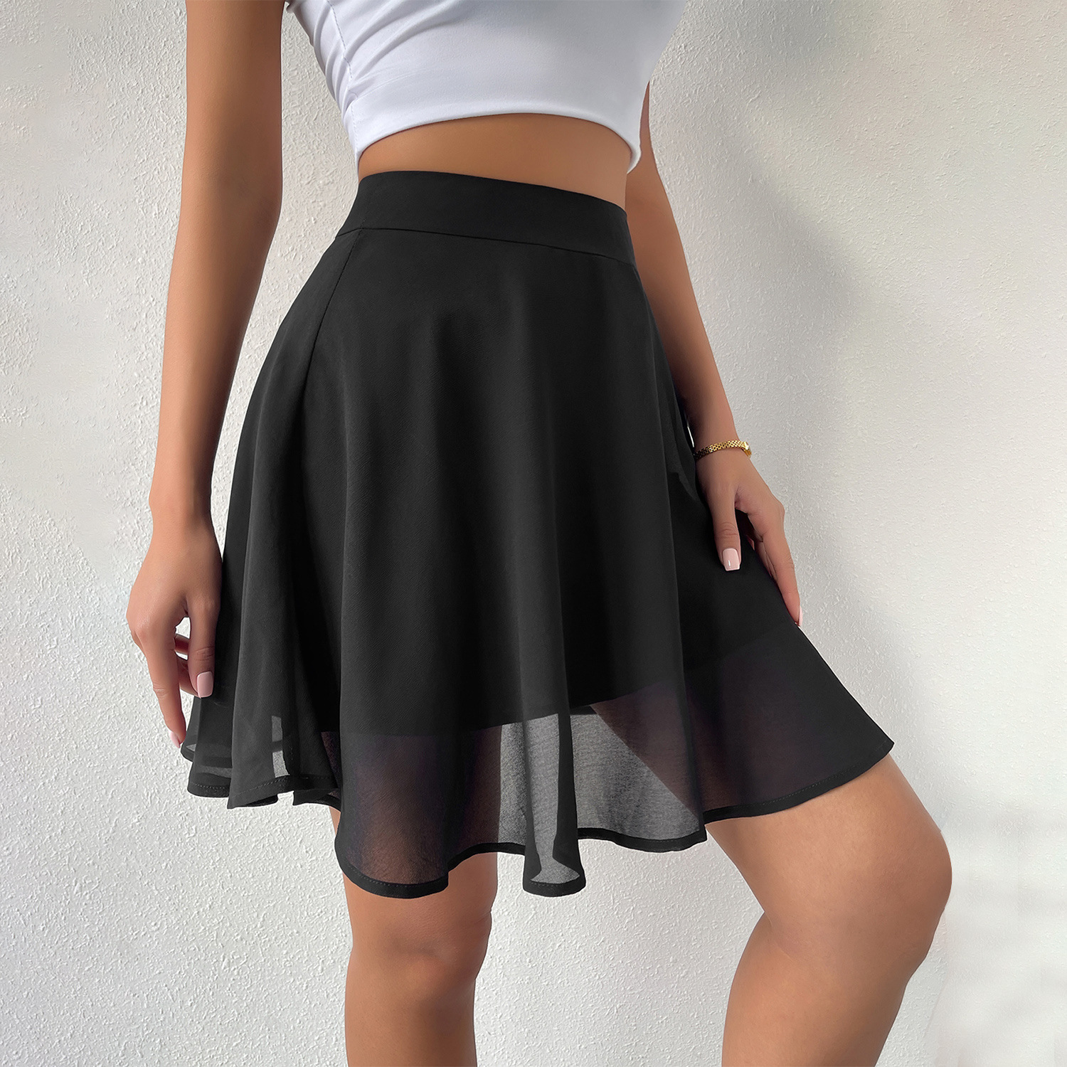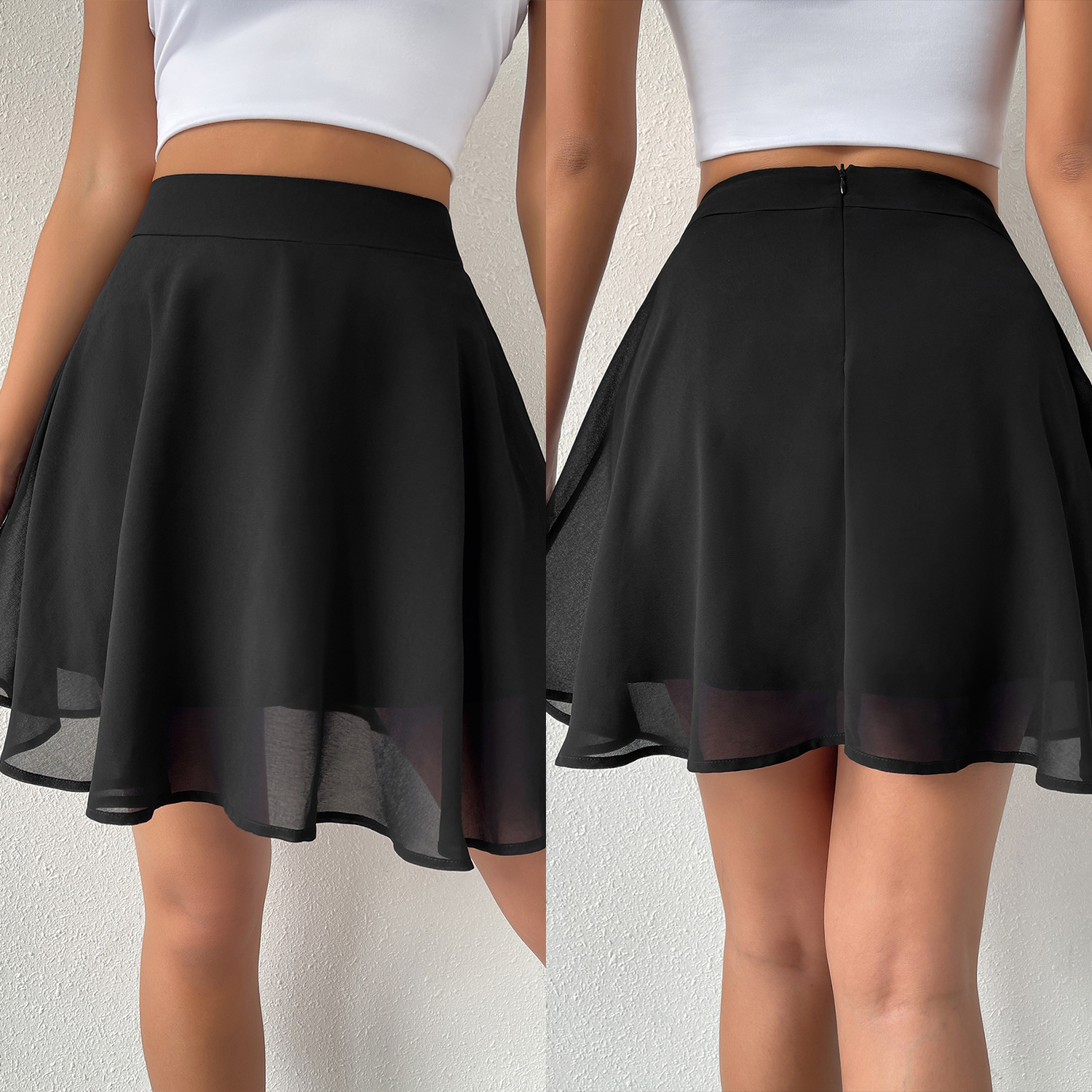 Fashion Solid Double Layer Chiffon Zip Casual Skirt